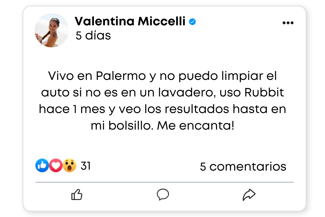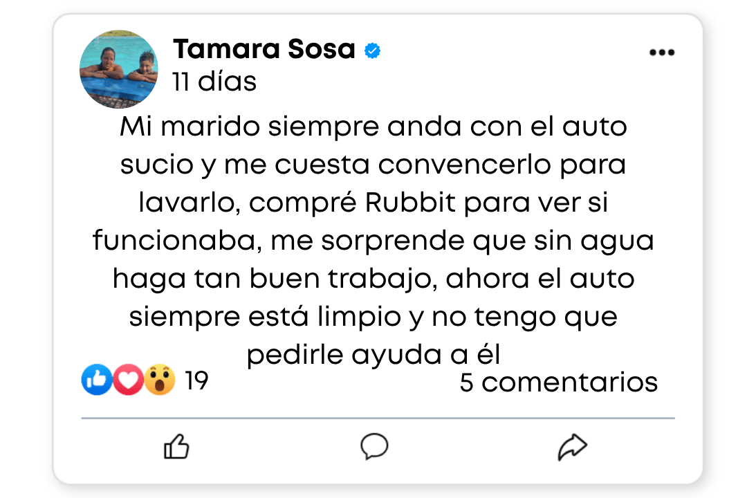 Con Rubbit podés ahorrar más de 11.000 litros de agua potable al año. Además, gracias a su pH neutro, garantiza un uso efectivo y seguro, no solo para tu auto, sino también para tu piel, tu respiración y el medio ambiente. 🌎💧