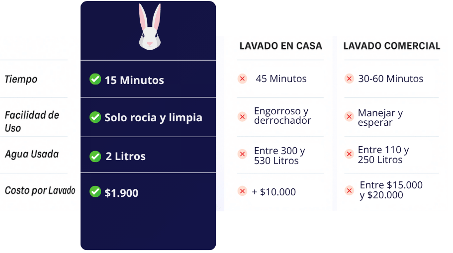 La Espuma Rubbit 2.0 es ultra concentrado y rinde hasta 25 lavados por botella, dependiendo del tamaño de tu vehículo y de qué tan sucio esté. Eso significa que cada lavado cuesta apenas $1.900 mucho menos que un viaje al lavadero.